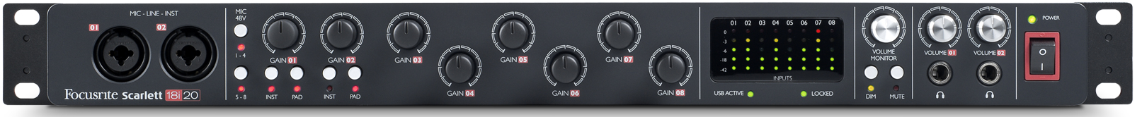 Focusrite’s Scarlett 18i20 is the latest in the company’s new generation of multi-channel USB-based audio interfaces, featuring eight award-winning Focusrite microphone preamplifiers, designed specifically for the computer interface environment, delivering legendary Focusrite sound quality.