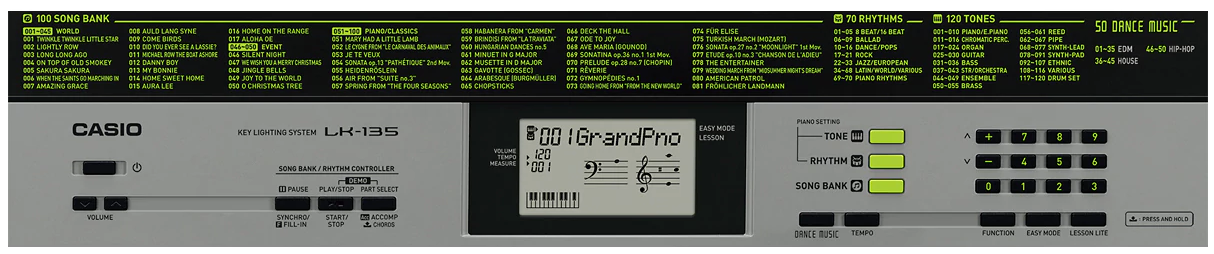 Dengan mode music dance, anda dapat memainkan nada – nada musik dance layaknya seorang DJ hanya dengan memainkan satu tuts saja. Anda dapat menggabungkannya menjadi satu komposisi lagu dance dengan mudah. [Tersedia pada] CTK-3500, CTK-2550, CTK-2500, CTK-1550, CTK-1500, LK-265, LK-190, LK-136, LK-135