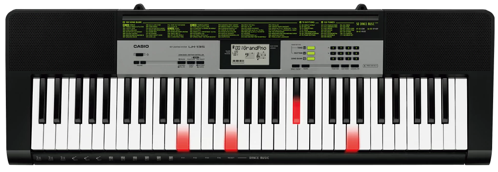 Ikuti nyala lampu di keyboard untuk pembelajaran bertahap sesuai dengan ritme anda.