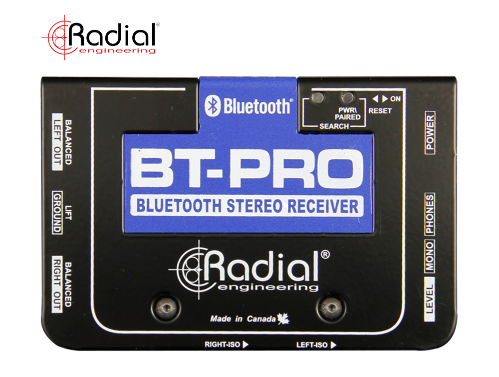 BT-Pro adalah Bluetooth Direct Box yang didesain untuk menangkap transmisi sinyal secara wireless dari sebuah perangkat yang memiliki koneksi Bluetooth dan mengkonversi sinyal tersebut menjadi balance yang bisa diteruskan ke PA atau Recording system. Perangkat ini mampu menjangkau jarak 12 meter atau lebih dengan jarak pandang antar devicw tidak terhalang oleh bidang solid.