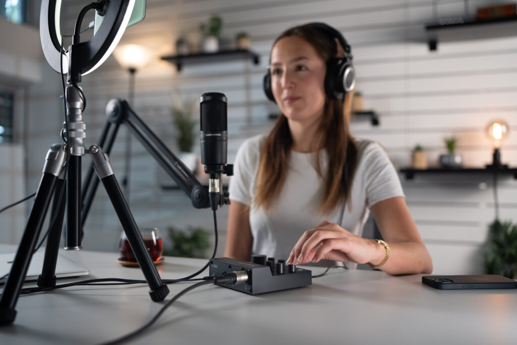 Dengan mixer ini, Anda tidak perlu memikirkan pengaturan peralatan, yang bisa membingungkan bagi pemula, atau menginstal driver khusus apa pun. Mixer plug-and-play ini memiliki dua channel input LINE, input Hi-Z, dan input stereo, sehingga Anda dapat me-mix dan streaming instrumen musik dengan audio mikrofon. Misalnya, Anda dapat streaming musik hanya dengan menghubungkan gitar atau keyboard.